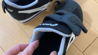 同じアシックスのスクスクと比べてレーザービームはつま先部分が低めなので、今回+1.0cmで足の長さは余裕をもって選んだんですが息子いわく「ちょっとキツイ」ということで足に合いませんでした。
