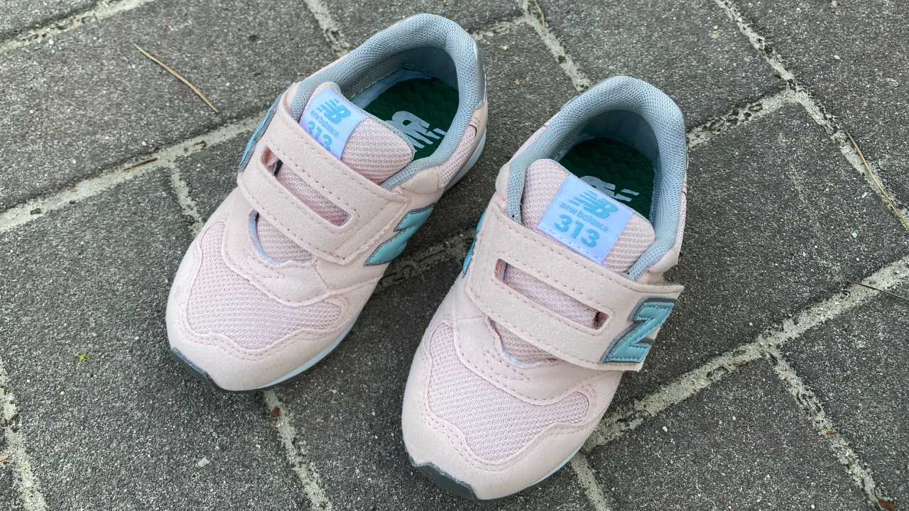 赤ちゃんの頃から甲高幅広でなかなか合う靴がなく、今まで履いていたのはニューバランスベビーの幅広モデルIO313。他に幅広の子でも履けるキッズシューズはないかと試してみたのがムーンスターの3Eモデルでした。